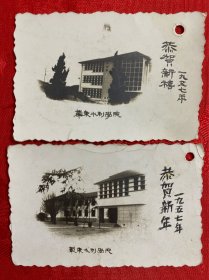 1957年 恭贺新禧 、恭贺新年 “华东水利学院 ”书签式老照片2枚