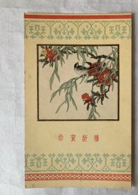 陈之佛作《花鸟》恭贺新禧贺卡,一版一印,1956年11月上海人民美术出版社