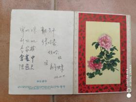 罕见五十年代老贺卡一枚《恭贺新禧》团菊、河北人民美术出版社-尊夹1-4