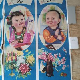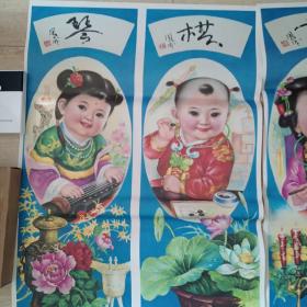 年画《琴棋书画屏》保真库存