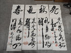 松涛书画:春夏秋冬花鸟四季屏(140cmX35cm)(四幅全)