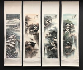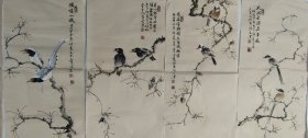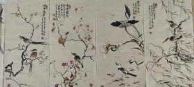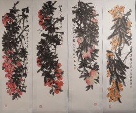 浙江名家,中国美院美术中心画家,张祖勇大幅花鸟画四条屏《大寿,大吉大利,事事如意……》181*49cm*4(30多个平尺),纸本托片,1160元包邮。(保真书画)