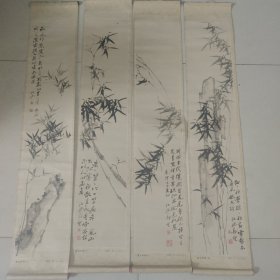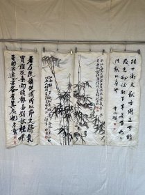 清代或民国,罗汉屏,四条屏,刺绣,(郑板桥竹,原名郑燮(xiè),字克柔,号理庵、板桥,江苏兴化人,清代书画家、文学家,章太炎,浙江余杭人,原名学乘,字枚叔)
