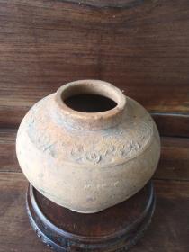 汉代陶罐,土锈斑斓,有朱砂红,为湖北襄阳战汉时期标准器,可作为教学、陈设、研究佳品,与千年古人对话实物,口沿直径9.2厘米,鼓腹直径14.5厘米,高12.5厘米,300元,古玩市场规矩不退换。