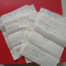 1979年8月30日,文物修复送件单6张(双耳彩陶罐,粗陶罐,红陶罐,唐白瓷盂,尖底瓶,雕刻砖,金代瓷碗等)甘肃省博物馆,由周佩珠专家负责修复。(生日票据,历史资料档案类,26-6)
