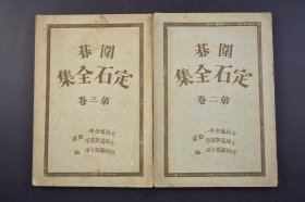 (己4409)《围碁定石全集》第二卷 第三卷 2册 七段 雁金准一 高部道平助讲 藤原七司编 圆角社 1929年 围棋棋谱 棋局 日本方圆社初段喜多博仙著 定石中文称为定式,一般是指围棋中,经过棋手们长久以来的经验累积,而形成在某些情况下双方都会依循的固定下法。发生在布局阶段时双方在角落地区的固定下法,但有时在中盘时的某些固定下法,也被称作中盘定式。尺寸 22*15CM