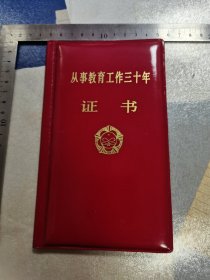 秦海芝 同志 :旧藏 :从事教育工作三十年 证书 :秦海之 同志从事教育工作三十年 ,为教育事业做出了贡献 ,特予表彰 。北京教育学院分院二部 :颁发 (32开)以图为准 ,了解详细请看图片