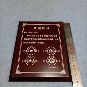 江苏省书法家协会颁发给著名书法家刘文华的《收藏证书》