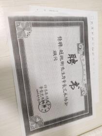 许昌卷烟总厂、帝豪艺术协会为河南省文史研究馆馆员赵抱衡先生颁发的《聘书》一件(复印件)及赵抱衡为河南省文史研究馆主办的《馆务信息》供稿原稿复印件1页。