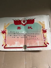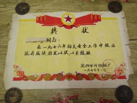 七十年代奖状【南京机动车辆厂颁发】