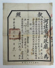 民国16年河北省财政厅颁发的执照
