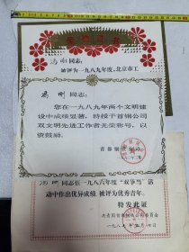 AF,1986年首钢公司颁发荣誉证书三张