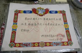 六十年代《老奖状》1962年颁发 书品如图.