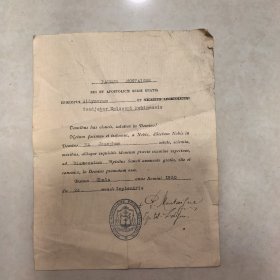 民国时期。教会颁发的证书(具体不详)
