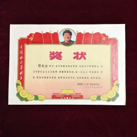 一九七五年长春五中颁发奖状一张