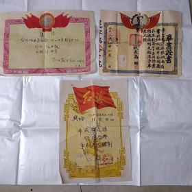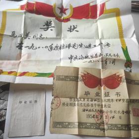 1960年重庆三十中学校张乾修毕业证(带照片)、奖状各一张,及介绍信4张及张乾修个人作品:评理记、参观"白公馆"“渣滓洞"后感想亲笔手稿等 合售