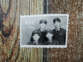 老照片/1966四名解放军战士合影/黑白