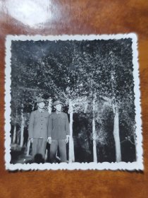 解放军战士杨树下合影老照片