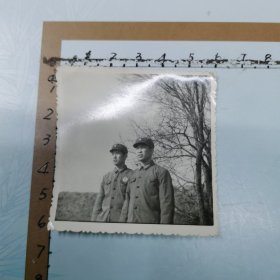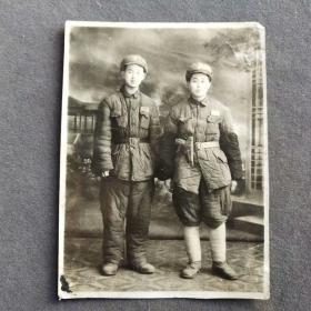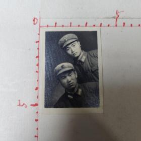 老照片:50年代初,两解放军战士合影照片5x3.5cm。