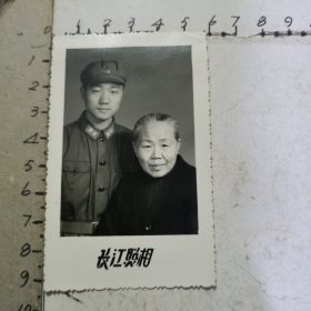 老照片:解放军战士母子合影(母慈子孝)、60年代、长江照相馆