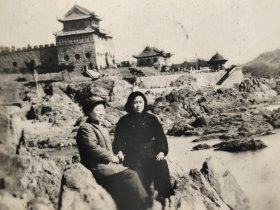 老照片 山海关万里长城留影(两位解放军战士合影)