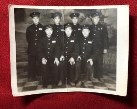 解放初期7名解放军战士合影艺术老照片
