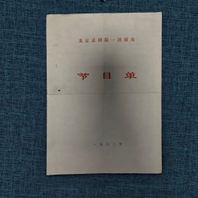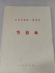 1979年北京京剧院一团演出~红梅阁~节目单