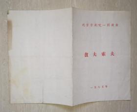 1985年北京京剧院一团演出《盘夫索夫》节目单