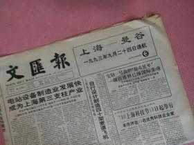 文汇报 1993.10.14【共8版】【上海永乐股份有限公司上海电影发行放映公司隆重推出《唐伯虎点秋香》(图为唐伯虎、秋香剧照——主演周星驰、巩俐)(广告);罗祖德-警惕建设性破坏 珠江三角洲已有前车之鉴,长江三角洲莫蹈覆辙;上海将成为“东方斜拉桥之乡”——浦江两桥总设计师林元培谈桥;大田世界博览会——展示高科技魅力;航头商城战略构想一一实现——董事长兼总经理郭秋杰答记者问;民族工业先驱方液仙】
