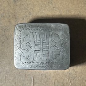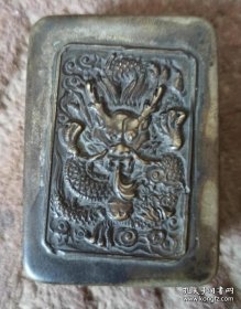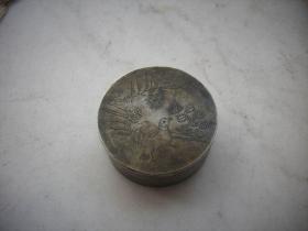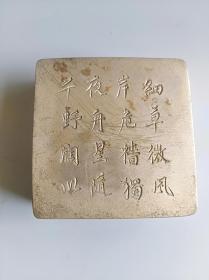 古玩旧藏民国文房山水刻铜墨盒 画面山水布局雅致,刻得很细,左下角楼台中可以看到有一人物手持书本在读书。白铜,全品,底款上海商务书馆监制。 直径9.3厘米,高3厘米。 包老包真,不老包退。