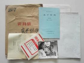影片(夜半惊魂)完成台本,有说明书,宣传画,海报,附原版剧照一套8张,主演:凌之浩、吴竞、杨昆、周野芒、吴天戈、韦力、曹丹、黄达亮、冯奇、王军辉、曹坤其、朱申嘉