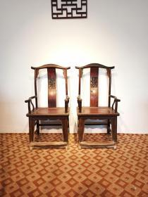 榆木四出头官帽椅 一对 茶室喝茶用,茶室 主人椅 一般按照风水理论来说,一定要高於其他座位的,一般要选择大四椅,尺寸:57*45*123㎝高,坐面高:53㎝