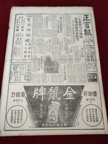 中华民国三十五年四月正言报1946年4月10日三人委会沈阳秦德纯筑垣湘鄂绥南开大学东北 董彦平哈尔滨叶挺鸳鸯牌金龙牌宝凤祥银楼宋院长食母生保健钙西贡北郊原子宏兴鹧鸪菜龙虎牌良园沙白枇杷膏飞龙牌雨衣香港