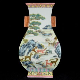 清乾隆粉彩百鹿四方相器瓶31×17×31,¥5700