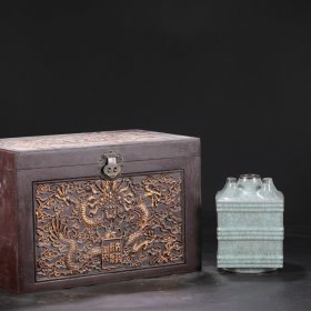 南宋 官窑青釉银口宫廷祭祀礼器四方五管瓶“乾隆御题”