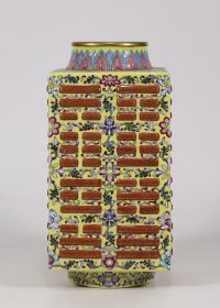 清乾隆年制黄底缠枝八卦四方瓶