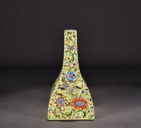 清乾隆黄地珐琅彩番莲纹四方瓶