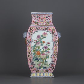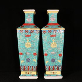 清乾隆粉彩四方瓶一对 尺寸 高 直径16厘米