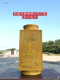 25_乾隆鸡黄釉博古四方瓶