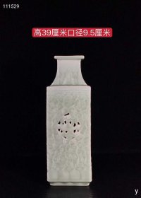 169_乾隆单色釉镂空四方瓶,纯手工胎,器形优美,造型周正挺拔,品相完整。