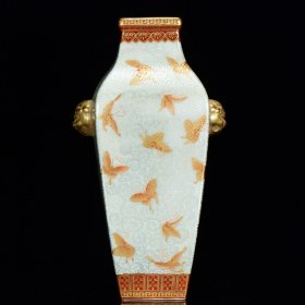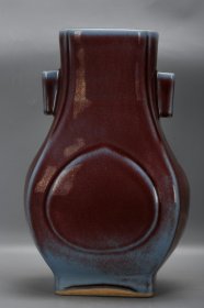 大明,乾隆窑变贯耳四方瓶一个高39.5厘米,口径14.8厘米,肚径25厘米,底径15.2厘米。