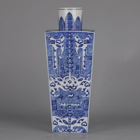 天圆地方四方瓶 清乾隆青花饕餮兽面纹 ---- 高44.6CM
