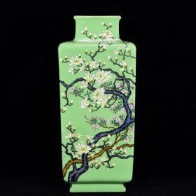 清乾隆年绿釉粉彩玉兰花卉纹四方瓶