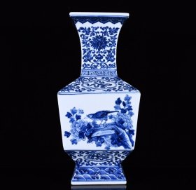 清乾隆青花花鸟四方瓶 尺寸:30*14厘米 价格3060