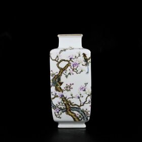 清乾隆粉彩花鸟四方瓶