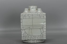 大清,乾隆哥窑四方五管瓶一个高19.5厘米,口径4.5厘米,肚经13厘米,底经11厘米。