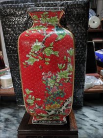乾隆珐琅彩四方瓶大红描金花鸟插花瓶中式古典复古家居
