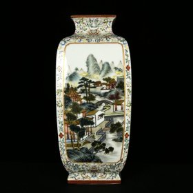 清乾隆珐琅彩描金文字山水纹四方瓶 高42厘米 直径19厘米