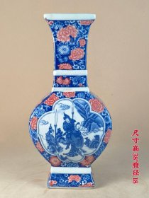 清乾隆年制青花釉里红人物两面开窗四方扁瓶,全品,保存完整