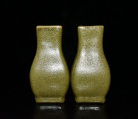 清代乾隆茶叶末釉四方瓶一对【 12.6x6.6cm 】价格330